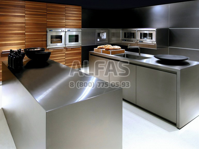 нержавеющих декоративных панелей в инерьере кухни