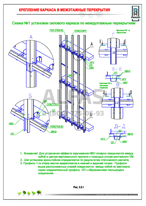 Возможна система крепления как по всей поверхности стены, так и исключительно в межэтажные перекрытия.